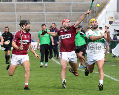 Castlegar v Clarenbridge Senior Hurling Championship Pearse Stadium. TJ Brennan and Conor Lee, Clarenbridge and Ger Farragher, Castlegar