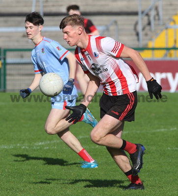 An Cheathrú Rua v Monivea/Abbey Under 17 B County Football Final at Pearse Stadium. An Cheathrú Rua goalkeeper Lorcán Ó Lupáin and Darren Devaney, Monivea/Abbey