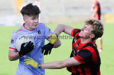 An Cheathrú Rua v Monivea/Abbey Under 17 B Football final. Eanna Dolan, Monivea/Abbey and Eoin Mac Donnacha, An Cheathrú Rua